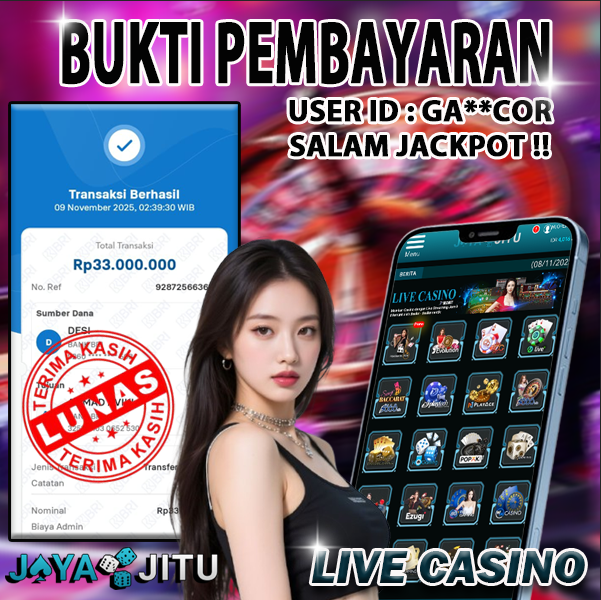 Kami ucapkan selamat atas kemenangan member kami yang telah berhasil mendapatkan kemenangan besar pada permainan (LIVE CASINO) dan melakukan withdraw sebesar Rp.33.000.000,- Tidak perlu waktu lama,pihak JAYAJITU langsung melakukan proses transfer dana ke rekening pemenang dan dana kemenangan sudah mendarat mulus ke rekening penerima.